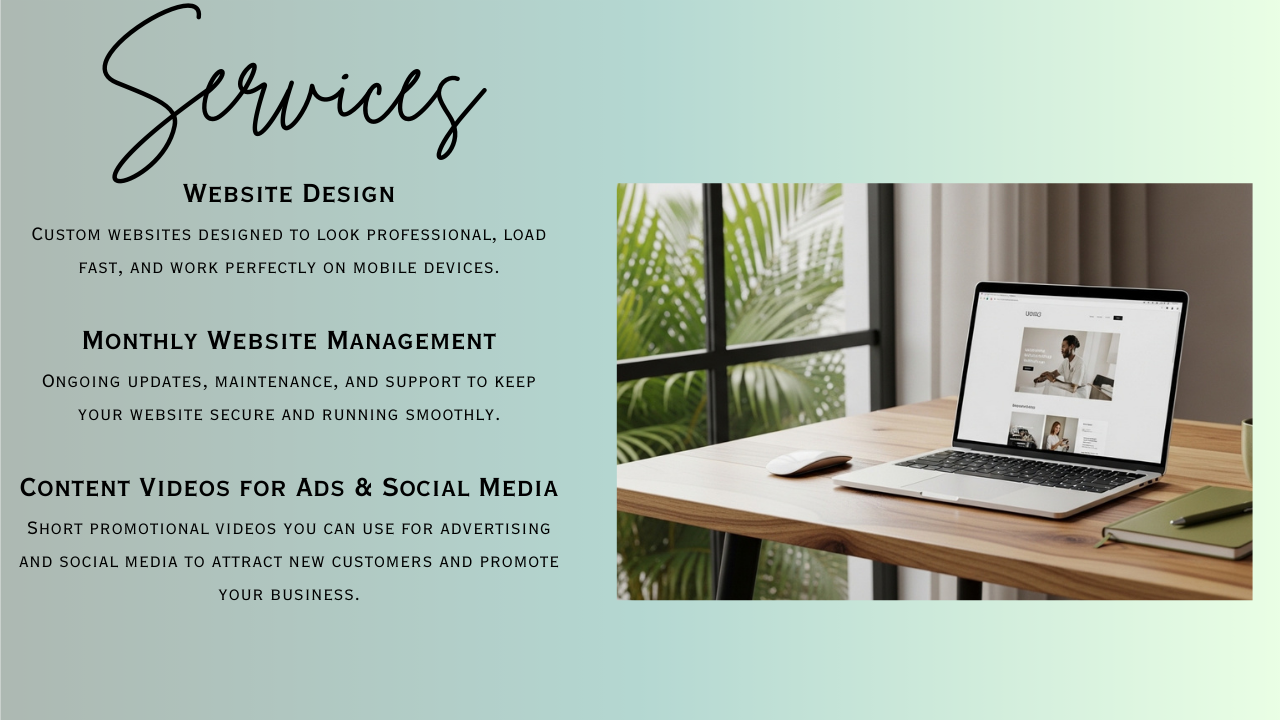 Professional websites, ongoing website management, and high-quality content videos to help your business attract more customers.